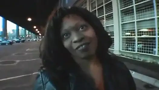 Толстушка делает минет огромному члену на улице